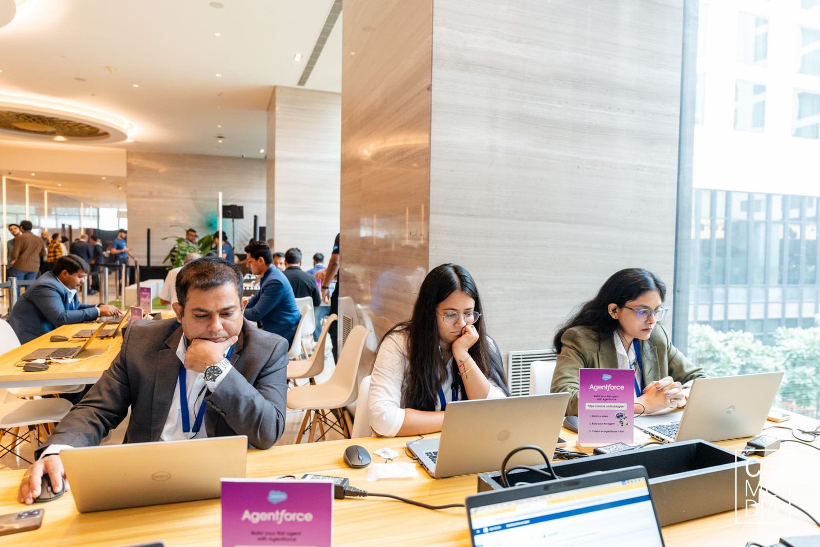 We documented attendees as they explored Agentforce demos—building autonomous agents, learning workflows, and engaging with industry experts. Expressions, reactions, and curiosity-driven moments highlighted how AI integrates into modern enterprise decision-making. This aligns with the growing demand for AI event photography and tech event photography across India.